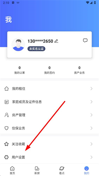 1、進入住房首頁界面后,找到底部導(dǎo)航欄中的我的選項并點擊,進入個人頁面。