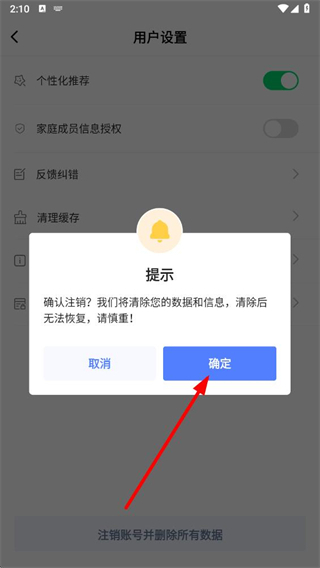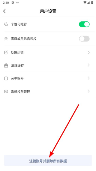 3、在用戶設(shè)置界面里,找到注銷賬號并刪除所有數(shù)據(jù)選項,點擊該選項觸發(fā)注銷流程。