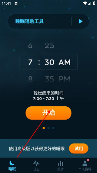 1、打開Sleep Cycle APP,在睡眠頁面點(diǎn)擊開始。