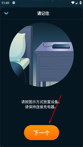 2、在提示頁面點(diǎn)擊下一個(gè),按照指引放置設(shè)備并保持連接充電器。
