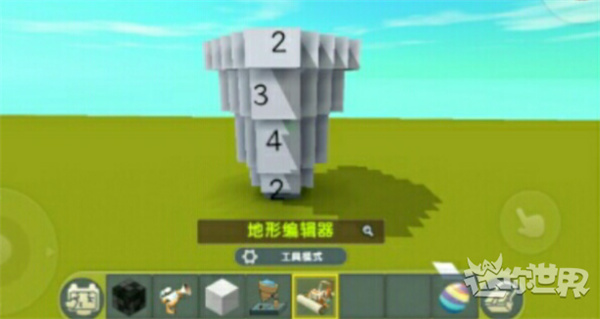 先用地形編輯器選擇左上角第二行第一個(gè)模型,然后選擇半徑為三半徑,然后空心要打開(kāi)。