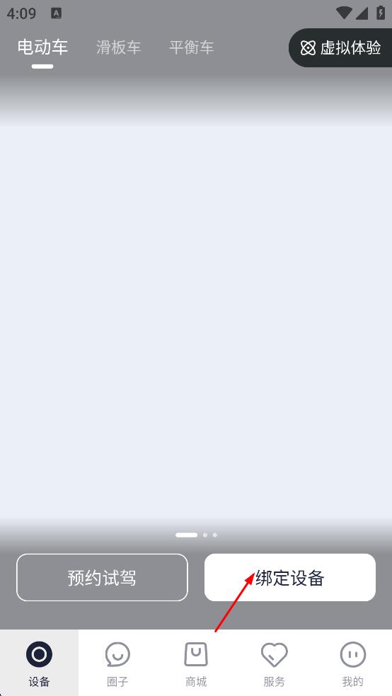 2、登錄成功后進(jìn)入設(shè)備頁面,頁面底部有設(shè)備、圈子等選項(xiàng),點(diǎn)擊“綁定設(shè)備”按鈕,進(jìn)入設(shè)備綁定操作環(huán)節(jié)。