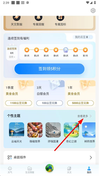 2、在個人中心頁面的個性主題板塊中,點擊查看更多選項。