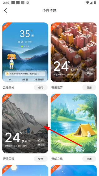 3、在個性主題頁面,點擊選擇想要更換的主題。