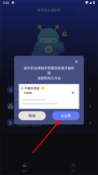 2、在彈出的懸浮窗權(quán)限提示框中,點擊去設(shè)置,按照指引開啟權(quán)限。