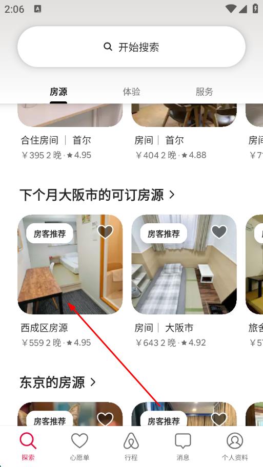 1、打開愛彼迎App,在探索頁面中,找到你感興趣的房源,點(diǎn)擊進(jìn)入。