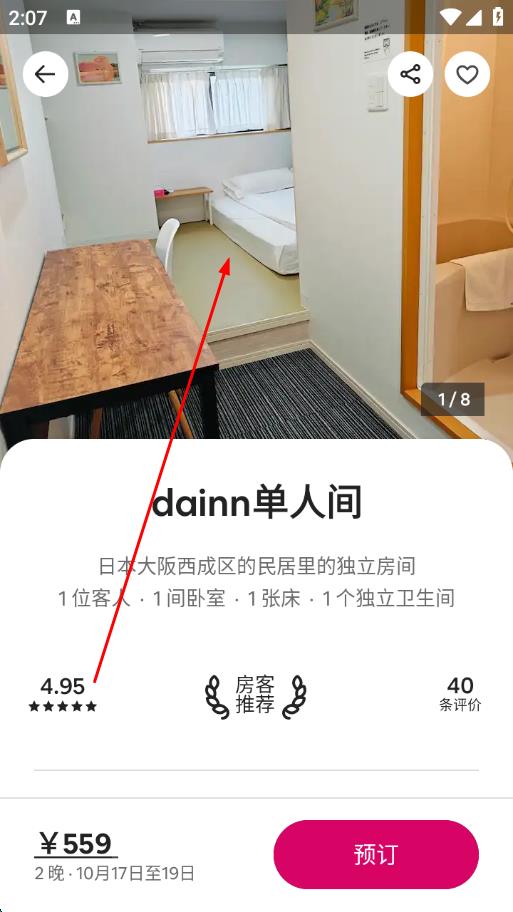 2、進(jìn)入房源詳情頁后,查看房源圖片,初步了解房間的布局和空間情況。