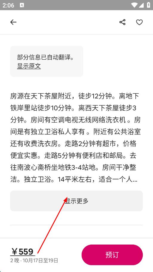 3、在房源圖片下方,找到關(guān)于房源的詳細(xì)描述部分,點(diǎn)擊顯示更多。
