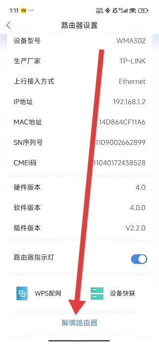 3、在路由器設(shè)置頁面,點擊底部的解綁路由器按鈕,按照提示操作,即可完成該路由器設(shè)備的刪除流程。