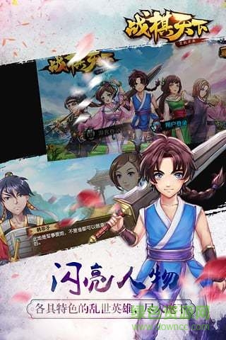 《戰(zhàn)棋天下》是一部Q版畫風(fēng)的戰(zhàn)棋游戲,游戲世界以戰(zhàn)火紛飛的戰(zhàn)國時期為背景。玩家在這個世界中扮演無名小將,周游列國河川,結(jié)交英雄名士,組建超級軍團(tuán)一起逐鹿天下!《戰(zhàn)棋天下》里有絢麗的法術(shù),有鮮明的武將特技,有慷慨悲歌之士,有傾國傾城之美人,動人的故事代代流傳。真情歡迎大家的加入,讓我們一起征戰(zhàn)天下,重回戰(zhàn)國!