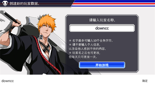 7、下載數(shù)據(jù)完成后,輸入玩家名稱,名稱最多可以輸入10個(gè)全角字符;