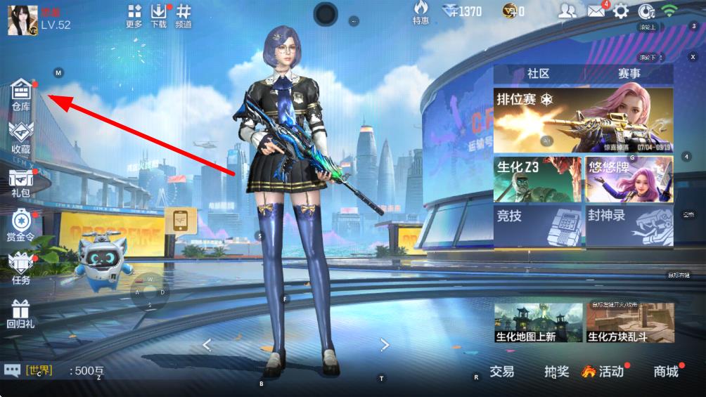 1、打開穿越火線游戲,進(jìn)入后在游戲主界面點(diǎn)擊左側(cè)的倉庫選項(xiàng)。