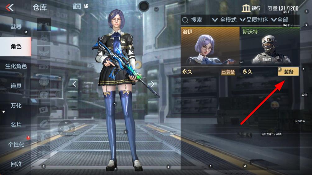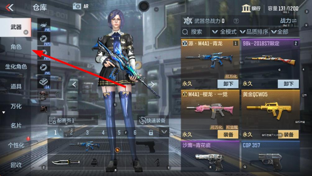 2、進(jìn)入倉庫界面后,在左側(cè)菜單欄中找到并點(diǎn)擊角色的選項(xiàng)。