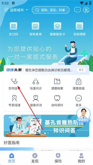 1、打開PICC人民健康A(chǔ)PP,在首頁點(diǎn)擊實(shí)時(shí)掛號。
