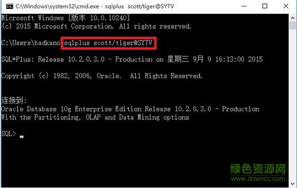 第三步:普通用戶①輸入用戶名:scott/tiger---(后面不必再輸入口令)②輸入用戶名:scott 輸入口令:tiger