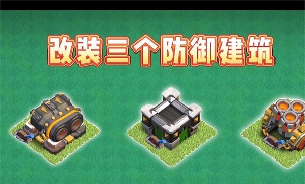3、改裝主世界的三個(gè)防御建筑(箭塔加農(nóng)炮,機(jī)炮);