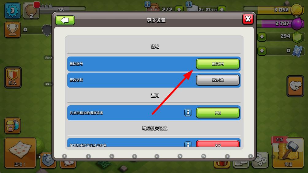 3、在更多設(shè)置界面的隱私板塊下,點(diǎn)擊刪除賬號(hào)按鈕,按照后續(xù)提示完成操作,即可注銷部落沖突賬號(hào)。請(qǐng)謹(jǐn)慎操作,注銷賬號(hào)后數(shù)據(jù)無法恢復(fù)。