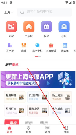 1、打開(kāi)上海中原地產(chǎn),點(diǎn)擊底部導(dǎo)航欄我的。