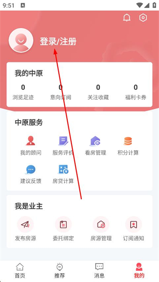 2、在我的頁(yè)面中,點(diǎn)擊上方的登錄/注冊(cè)選項(xiàng)。