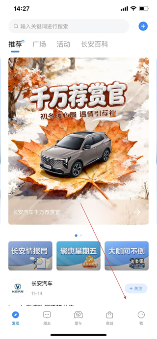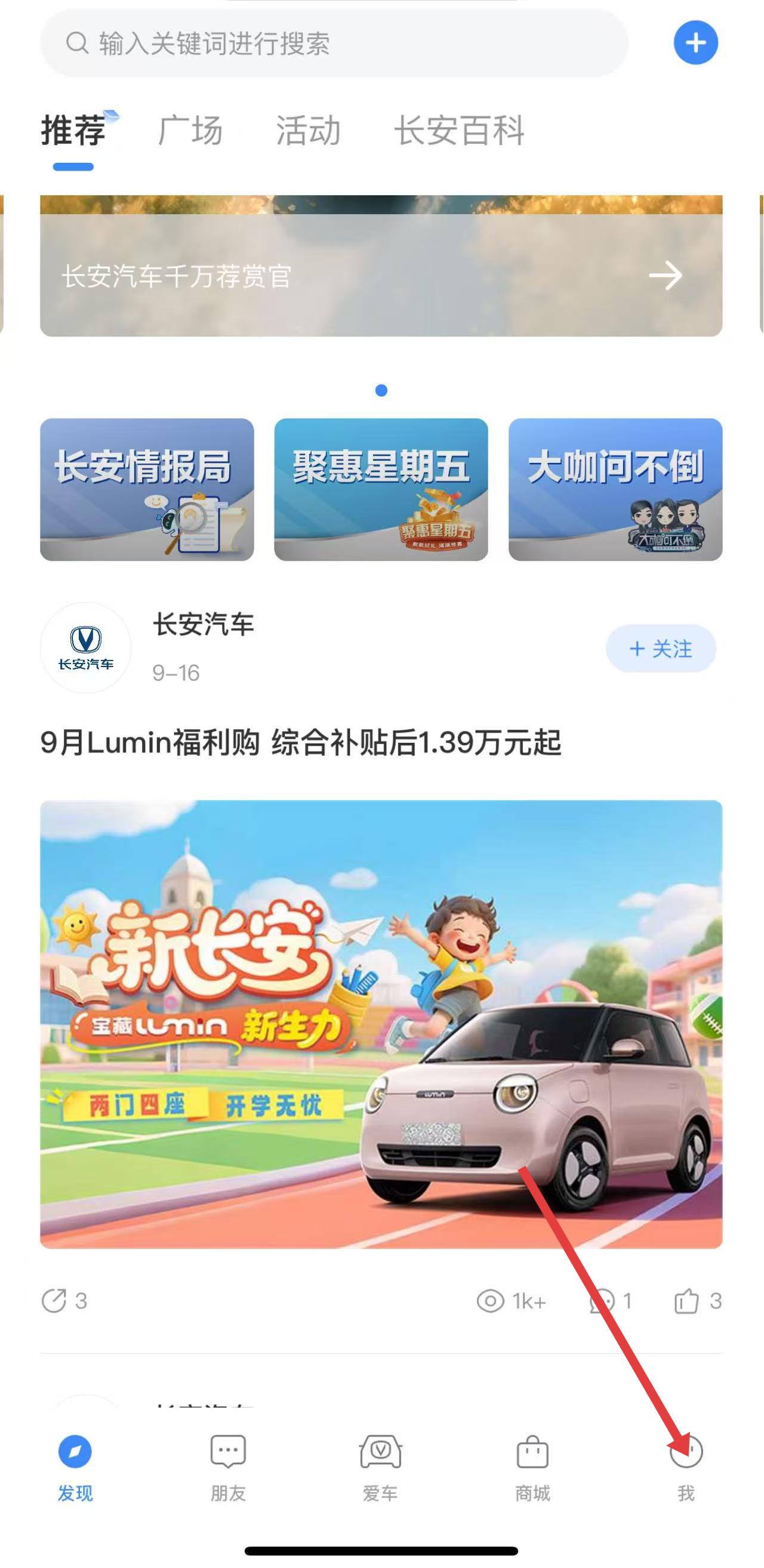 1、打開長安汽車APP,點擊底部我,進入個人頁面。