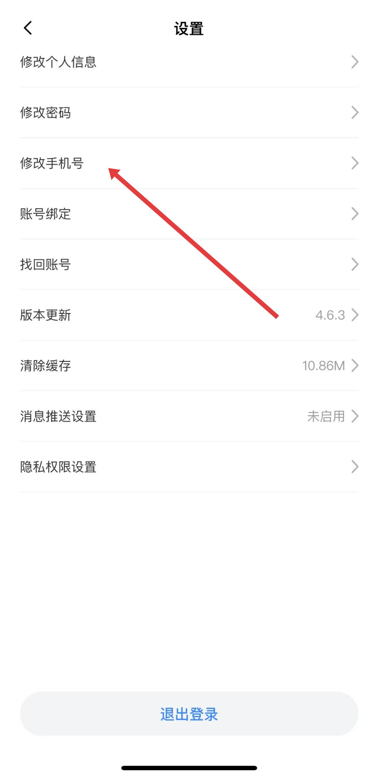 2、在設(shè)置頁面中,找到并點擊修改手機號選項。