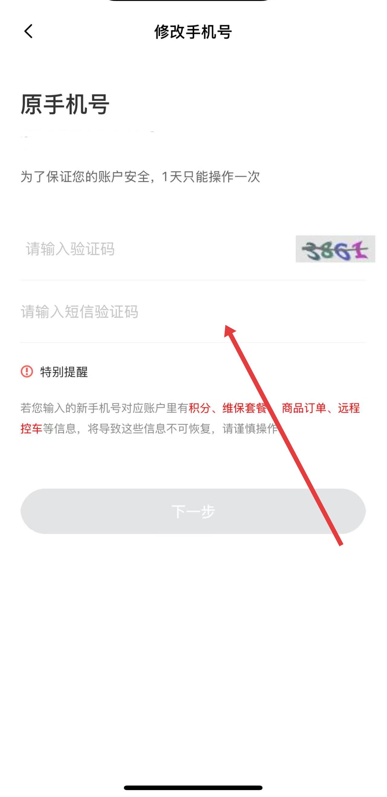 3、進入修改手機號頁面,按提示在原手機號欄輸入驗證碼,獲取并填寫短信驗證碼。