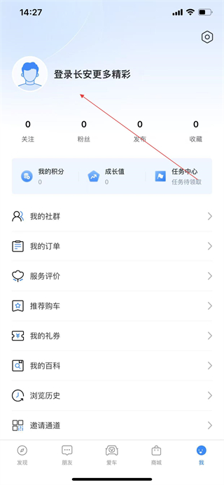 2、在個人頁面點擊登錄長安更多精彩區(qū)域,進入登錄頁面。