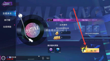 2、如果玩家賬號滿足進(jìn)入生涯關(guān)卡的條件,接下來可以點(diǎn)擊挑戰(zhàn)按鈕,開啟音樂玩法。