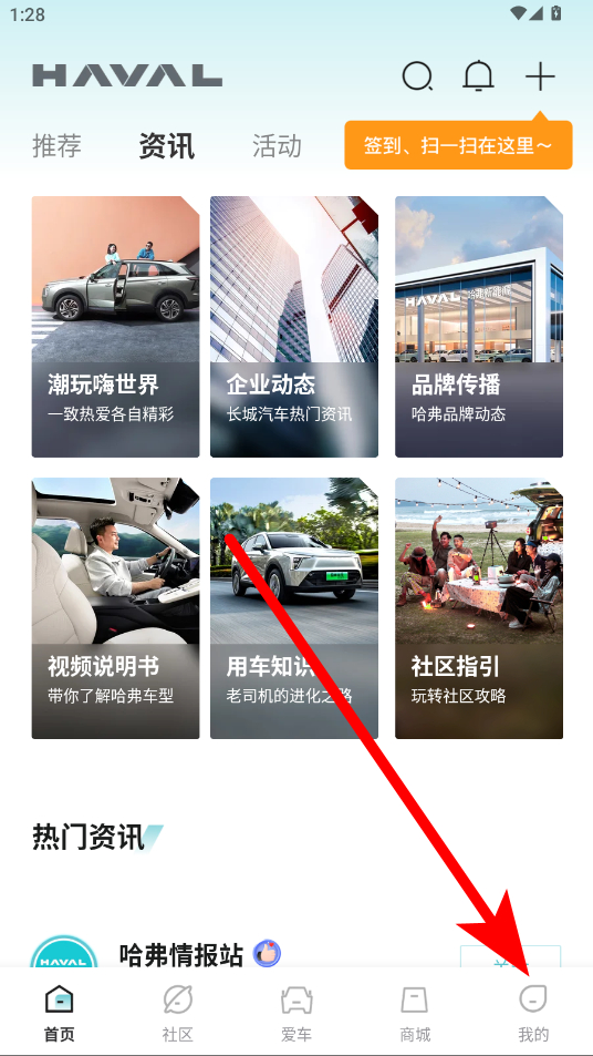 1、打開哈弗智家APP,在首頁(yè)點(diǎn)擊底部導(dǎo)航欄中的我的,進(jìn)入個(gè)人界面。