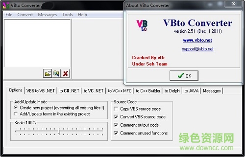 vbto converter 是一款專為編程人員準備的的小控件,能夠將VB源碼輕松的轉換成vc++、C#等多種語言編碼文件,方便程序員們直接使用代碼進行開發(fā)工作,感興趣的朋友歡迎來綠色資源網(wǎng)下載使用!