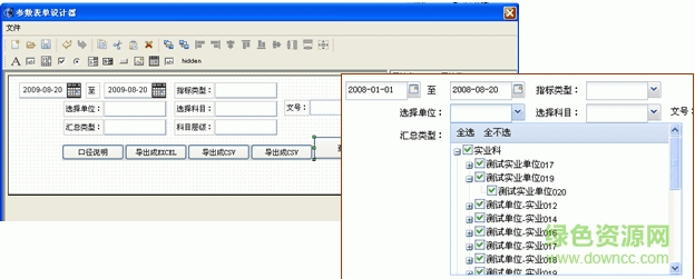 可視化的查詢表單設計器,可以自動從數據庫中取得數據,包括多選數,單選樹,日歷等控件,支持聯動下拉框等
