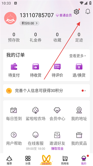 2、在我的頁面中,找到并點(diǎn)擊頭像右側(cè)的齒輪形狀設(shè)置圖標(biāo)。