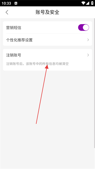 4、在賬號及安全頁面中,查找注銷賬號相關(guān)選項(xiàng),點(diǎn)擊注銷賬號。