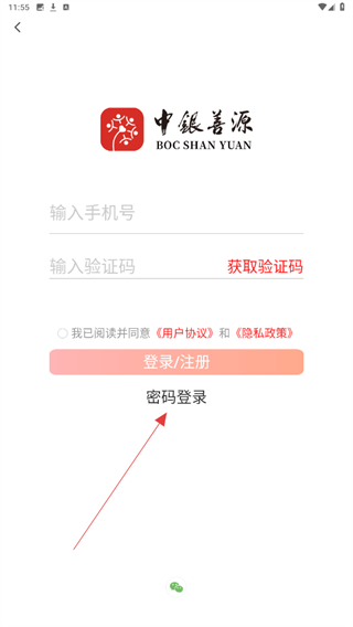 2、進入登錄的頁面內(nèi),點擊下方密碼登錄的按鈕。