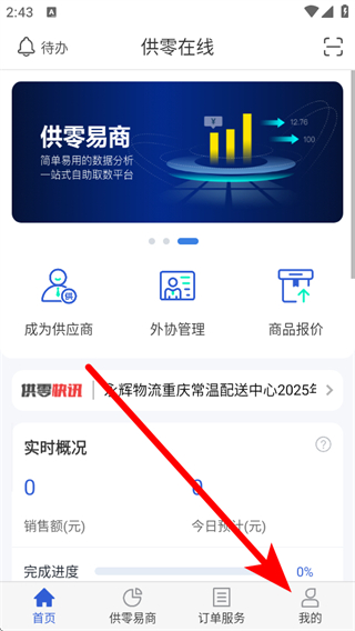 1、打開供零在線APP,點(diǎn)擊右下角我的,進(jìn)入登錄頁面。