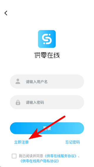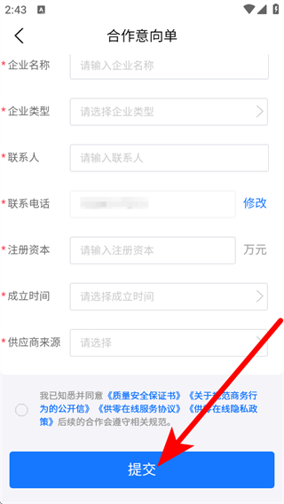 2、在登錄頁面,點(diǎn)擊立即注冊,進(jìn)入合作意向單頁面。