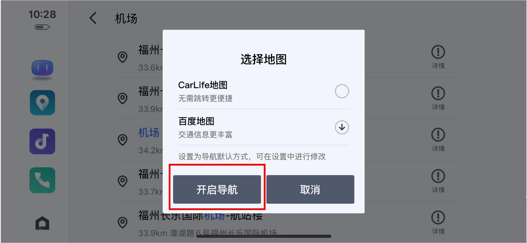 2.百度CarLife可以將手機(jī)界面投影至車機(jī)上,并且可以實(shí)現(xiàn)車機(jī)、手機(jī)雙向操作。連接方式為數(shù)據(jù)線,或者打開手機(jī)個(gè)人熱點(diǎn)和車機(jī)的Wi-Fi進(jìn)行連接。