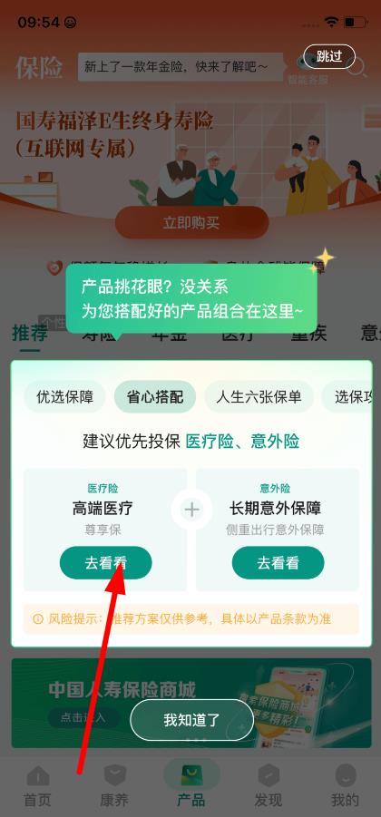 2、在產(chǎn)品頁(yè)面,若遇推薦彈窗,按需點(diǎn)擊去看看,了解醫(yī)療險(xiǎn)等產(chǎn)品組合詳情。