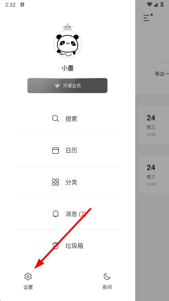 2、在側(cè)邊欄中,找到并點(diǎn)擊設(shè)置選項(xiàng),進(jìn)入設(shè)置頁面。