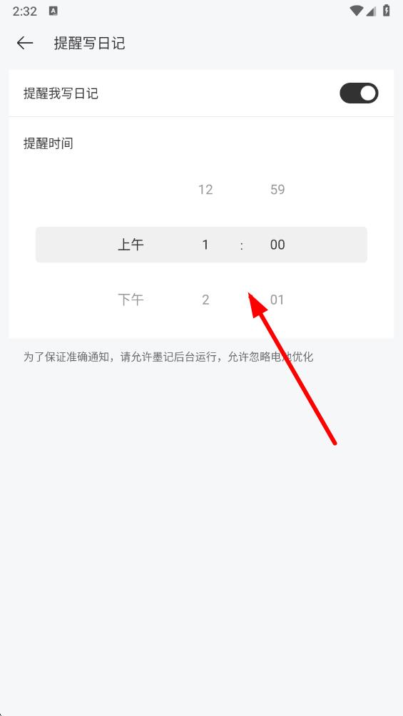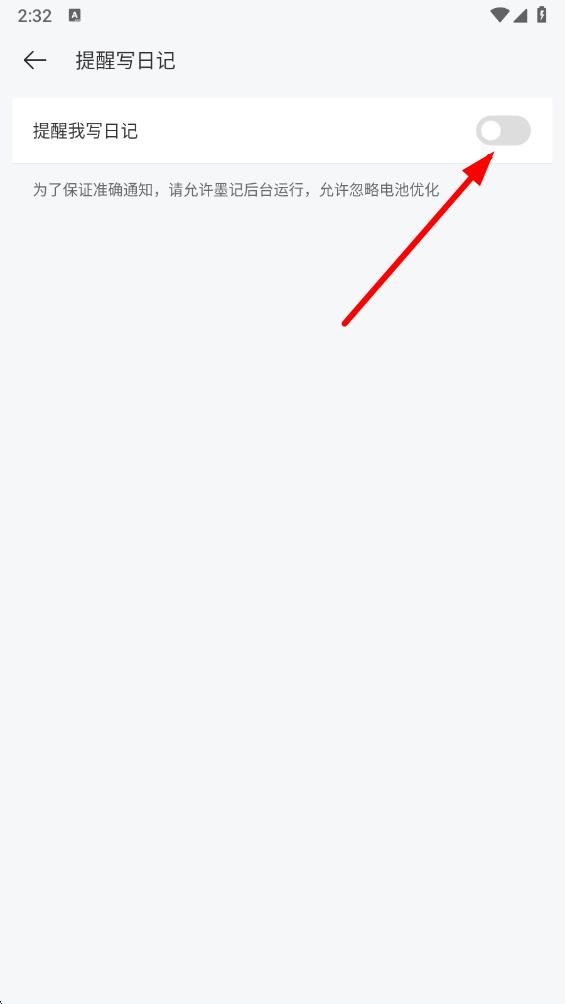 4、在提醒設(shè)置界面,點(diǎn)擊提醒我寫日記后的開關(guān)將其開啟。