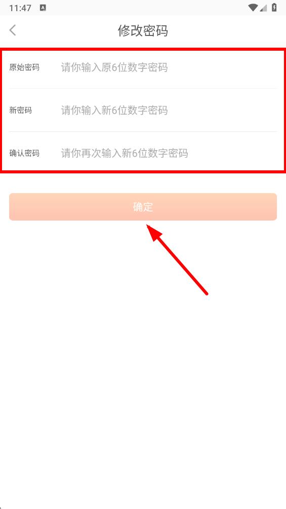 4、在修改密碼頁面,依次輸入原始密碼、新密碼、確認新密碼,然后點擊確定按鈕,即可成功修改密碼。