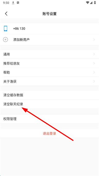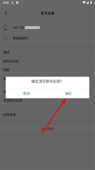 3、在賬號設(shè)置界面,點擊清空聊天記錄選項,彈出確認(rèn)清空聊天記錄的提示框。