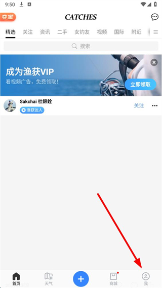 1、打開漁獲App,點擊底部導(dǎo)航欄的我選項,進入個人頁面。