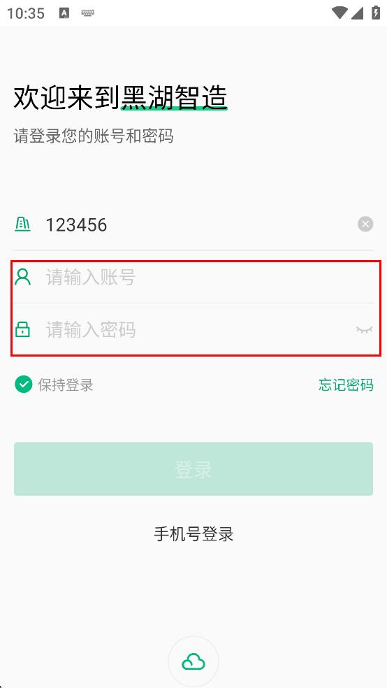 1、打開(kāi)黑湖智造軟件,進(jìn)入手機(jī)號(hào)登錄頁(yè)面后,點(diǎn)擊“賬號(hào)密碼登錄”選項(xiàng),進(jìn)入賬號(hào)密碼登錄界面。