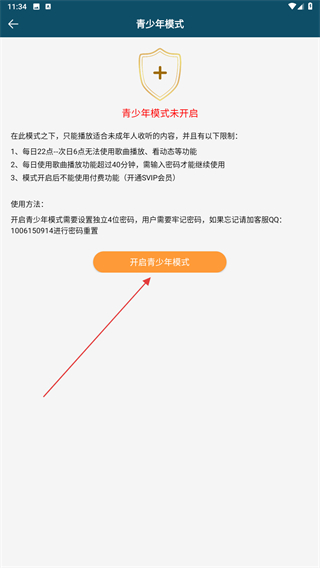 3、進(jìn)入該頁(yè)面內(nèi),點(diǎn)擊下方開(kāi)啟青少年模式即可。