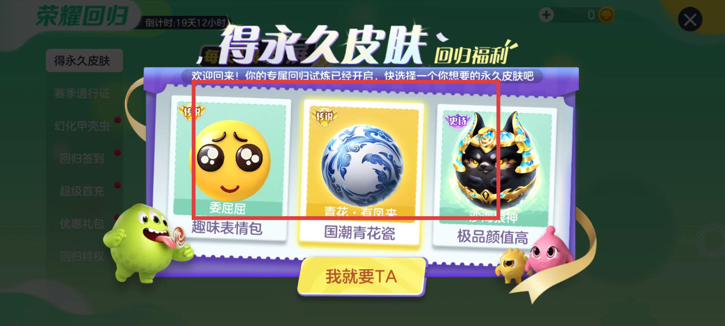 2、在得永久皮膚板塊,會展示可供選擇的永久皮膚,選擇自己心儀的皮膚,點擊我就要TA按鈕。