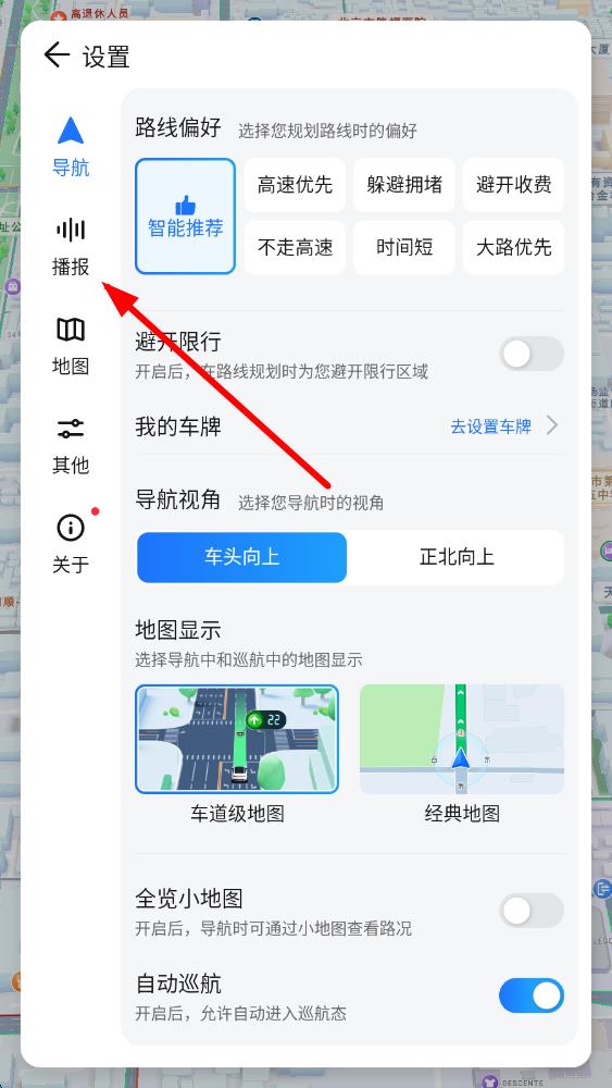 2、在設(shè)置頁面的左側(cè)菜單欄中,點(diǎn)擊播報(bào)選項(xiàng),進(jìn)入播報(bào)設(shè)置界面。