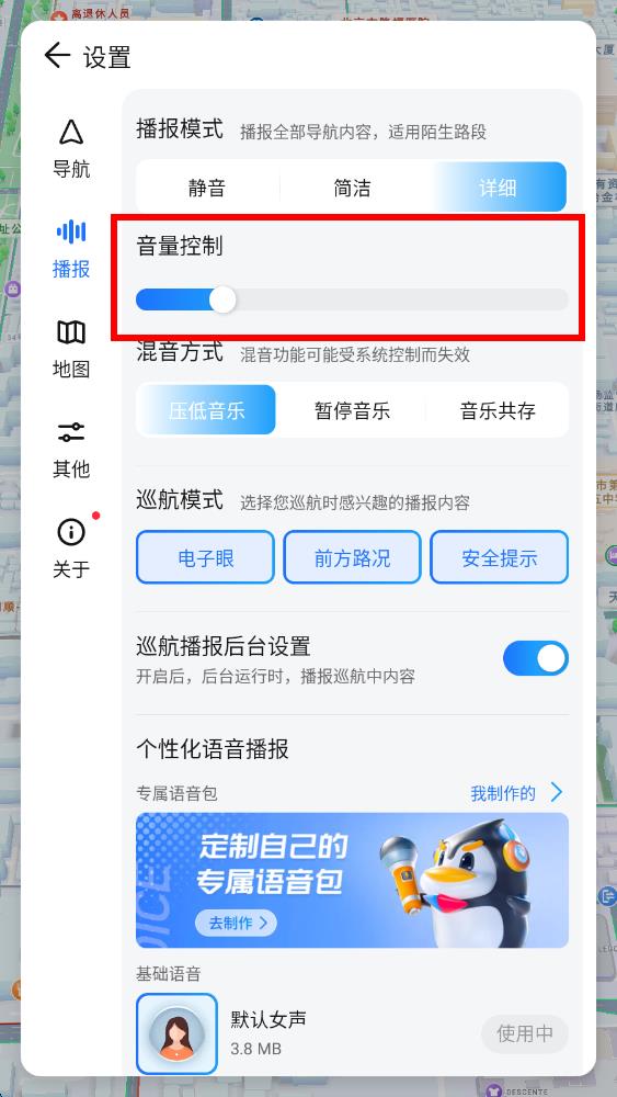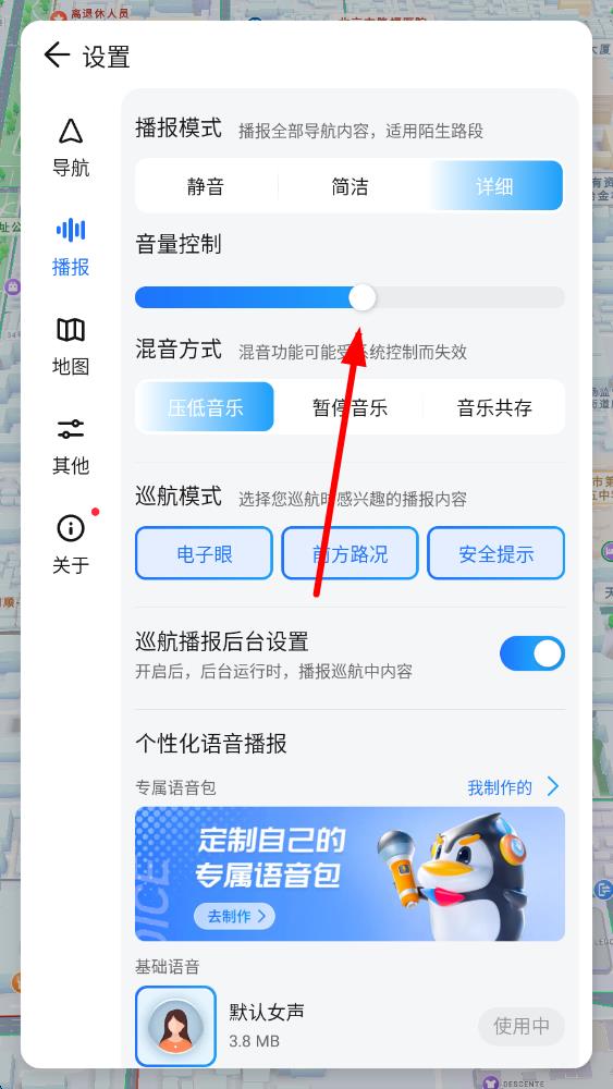 4、左右拖動音量控制的滑塊,即可對騰訊智駕地圖的語音播報(bào)音量進(jìn)行調(diào)節(jié)。
