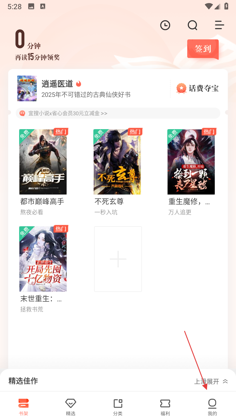 1、打開宜搜小說APP,點(diǎn)擊底部導(dǎo)航欄我的,進(jìn)入個(gè)人頁面。