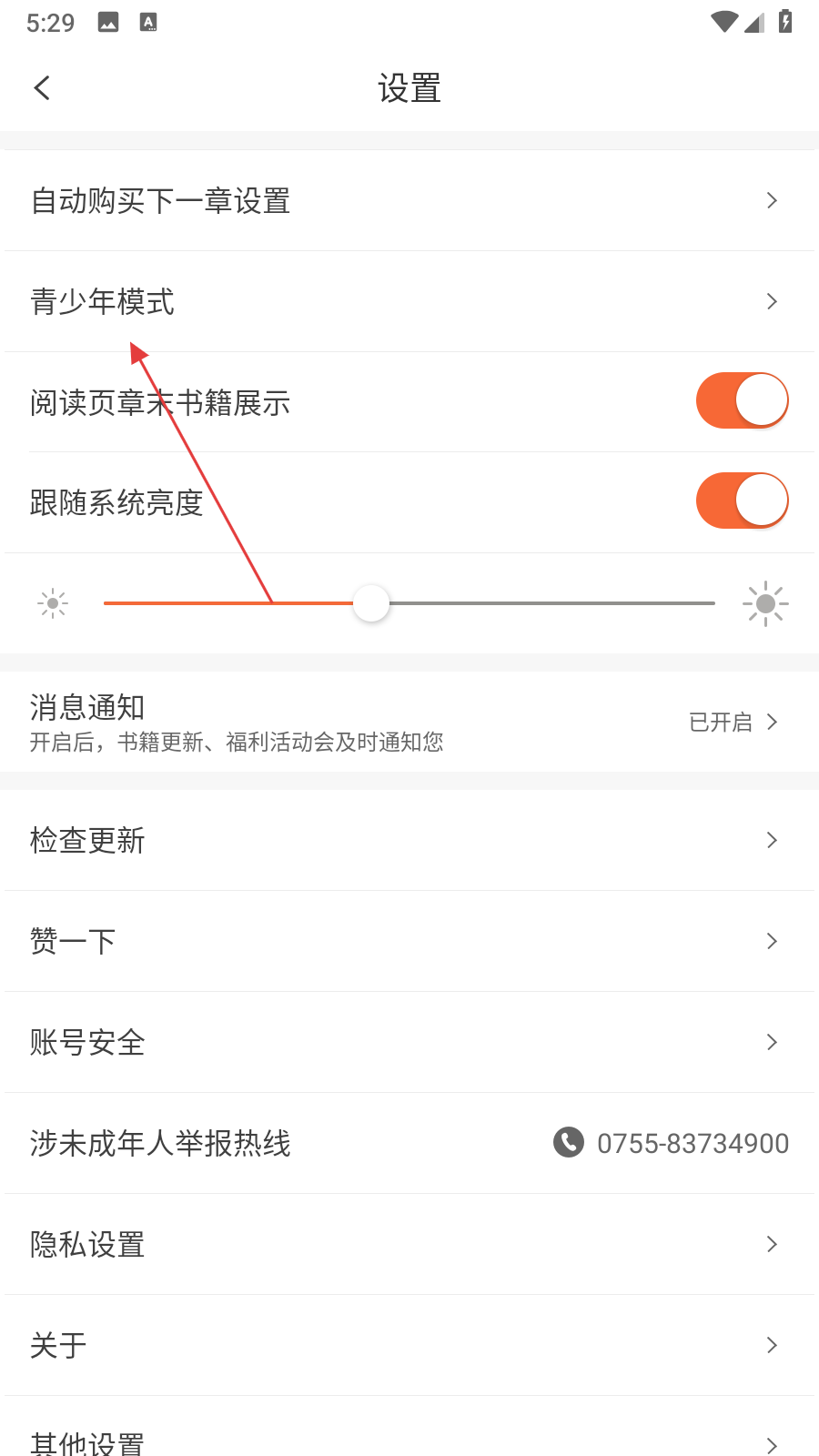 3、在設(shè)置界面里,找到青少年模式選項(xiàng)并點(diǎn)擊,進(jìn)入青少年模式頁面。